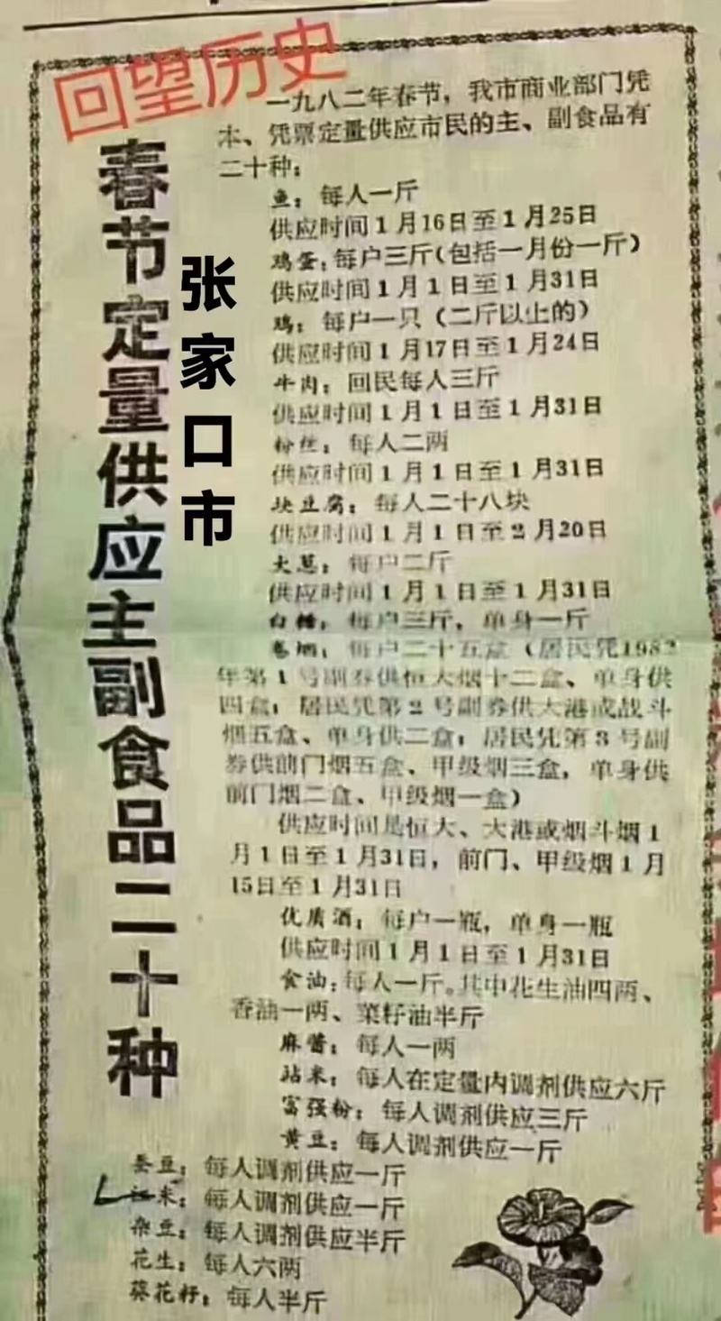 1982年張家口的春節(jié)供應清單,是一個時代的縮影。直到上世紀90年代中期,票證制度陸續(xù)退出歷史舞臺。